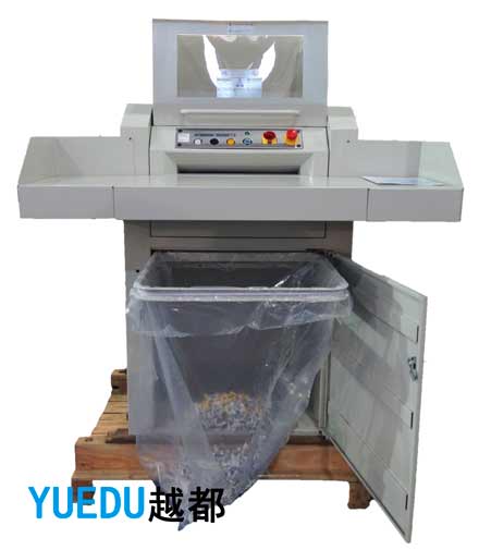 設備帶工作鎖、可有效防止非指定人員使用機器;全面的安全保險裝置,漏斗或前門打開時停機,進紙過高自動停機,過載自動反轉,可確保使用者的安全,刀具潤滑加油系統的配備使機器的使用壽命得以有效延長;有過熱保護,4KW馬達使粉碎的范圍更廣,并有多種粉碎模式供用戶選擇,具體可粉碎:光碟、軟盤、回形針、磁卡、書畫、保密資料等等;漏斗方式進料,更便于粉碎硬物和皺折的紙團、卡片等,且能有效的保護操作者的安全;碎紙緊壓功能避免頻繁清理廢物而影響工作進度,有效的提高了工作效率;整機附有滑輪和固定腳,這方便機器的移動和保證機器的平穩;該機適用于大型辦公室、印刷廠、公安局等政府機關文印室、檔案室、機房及各種資料集中銷毀的場所。
