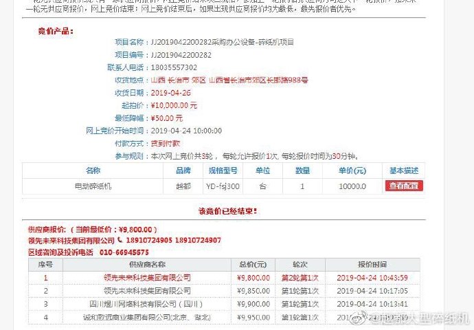 山西省長治市 #越都品牌 大型碎紙機# 公開招標采購結果公示