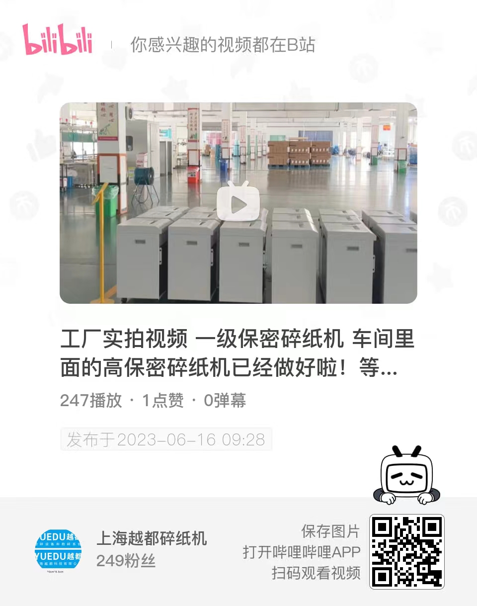 #工廠實拍視頻 #專業生產廠家 #高新技術企業 #高保密碎紙機 #一級保密碎紙機 車間里面的高保密碎紙機已經做好啦!等包裝裝好之后就可以發貨啦!越都m2405機型 國家保密局一級銷毀標準,涉密介質銷毀用碎紙機產品